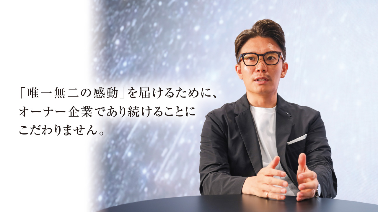 これからは、もっと大きな舞台で感動を届けていきたいと思っています。日本を代表する不動産会社になることと、世界に挑戦していくことです。そのために必要で、直近の目標として掲げているのがIPOです。IPOはゴールではなく、一つの通過点ではありますが、上場することで、会社には世の中からの監視が入り、会社の健全性や透明性が保たれますし、資金調達の幅も事業のフィールドも広がっていくでしょう。私自身、オーナー企業のままであることにこだわりはなく、むしろ世の中に開かれた存在になることが重要だと考えています。そうしてこそ初めて、多くの人に「唯一無二の感動」を届け続けられると思っています。