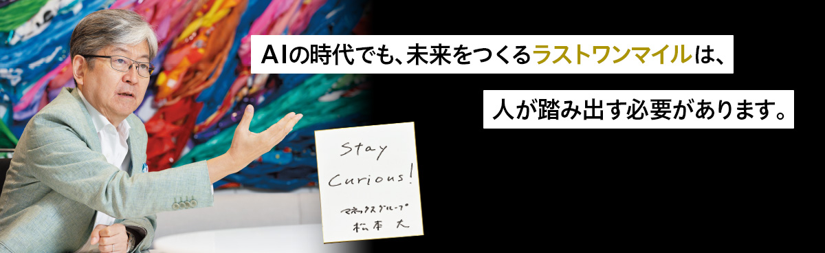 1999年に創業し、金融とITの融合で証券投資を人々に身近な存在へと変えたマネックス。MONEYのYを一文字前のXに置き換えた社名には、「未来の金融サービスをつくる」という、創業者・松本大氏の意思が込められている。同氏は、数々の革新的なサービスで国内外に事業を広げてグループを大きく成長させた後、2023年にマネックスグループ最高経営責任者の座を後継に託した。今年3月には代表執行役を退任し、完全にグループ本体の経営トップから退いたが、その歩みのなかで磨かれた経営観は、いまも揺るぎない。一歩先を見据えた意思決定の極意を、松本氏に聞いた。